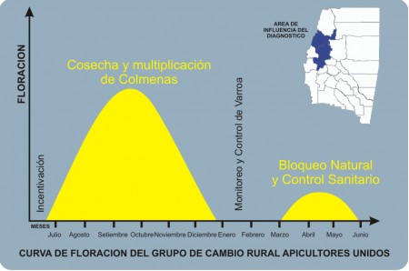 La curva de floración le permite al apicultor diagramar las tareas a realizar en el apiario. Por ejemplo, en los momentos en que la floración disminuye y en consecuencia también disminuye la actividad de la colmena, se pueden realizar tareas como: incentivación, recambio de panales y retiros de melarios, tratamientos sanitarios sintéticos y bloqueo de la cámara de cría
