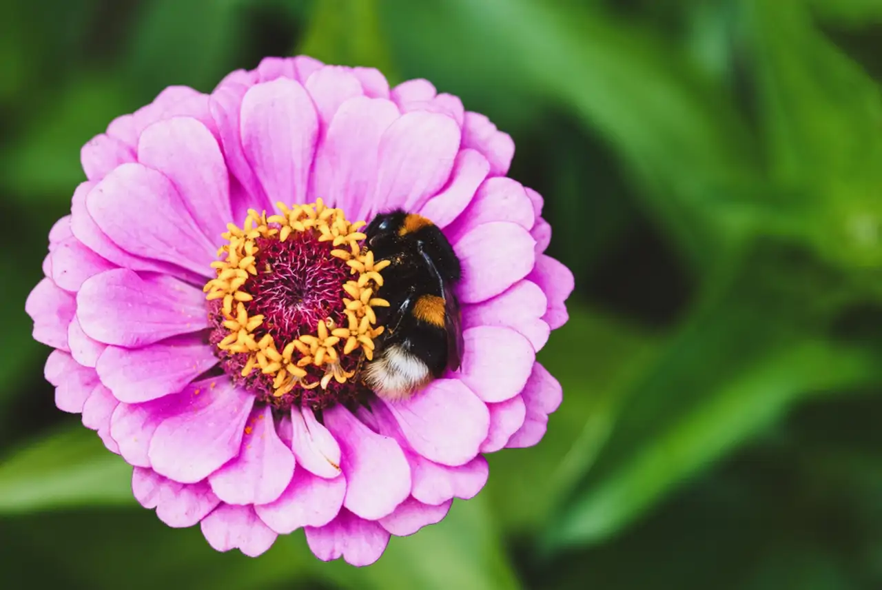 Un abejorro descansa en la superficie de una flor. Los científicos han documentado que las obreras recolectoras adaptan el sueño en función de sus necesidades, y, en ocasiones, pueden dormir pequeñas «siestas» en los lugares más insospechados, incluso en la superficie de una flor.