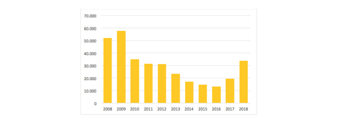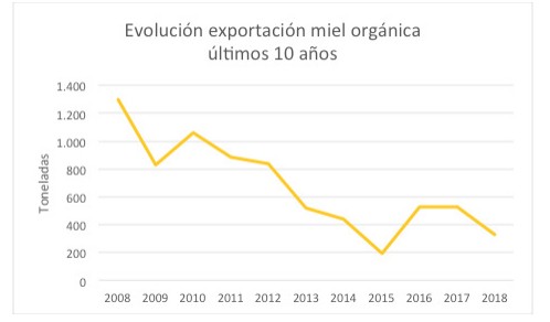 Durante la última década (2008-2018), la tendencia indica una reducción en los volúmenes promedio exportados. Sin embargo, se debe tener presente que una parte la miel orgánica con destino a EEUU es certificada únicamente bajo la Norma USDA, por lo cual no son contempladas por las estadísticas elaboradas por SENASA. Se estima entonces, que los valores reales de exportación serían más elevados.