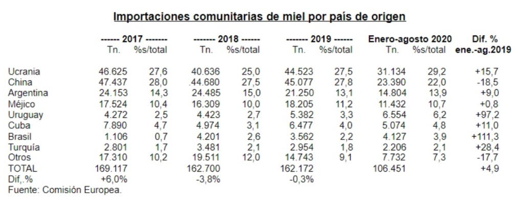 Y es que, de acuerdo con los últimos datos publicados por la Comisión Europea, las importaciones comunitarias de miel superaron las 106.000 toneladas en los primeros ocho meses de 2020, con un incremento de casi el 5% respecto al mismo período del año pasado.